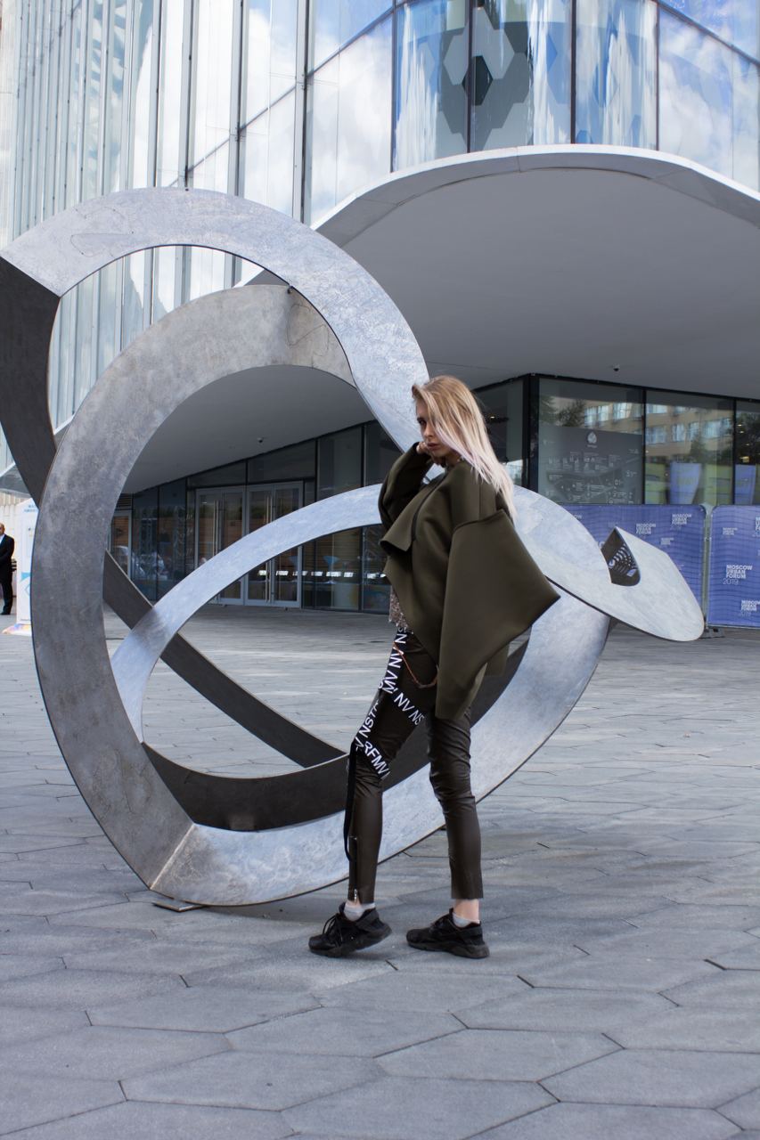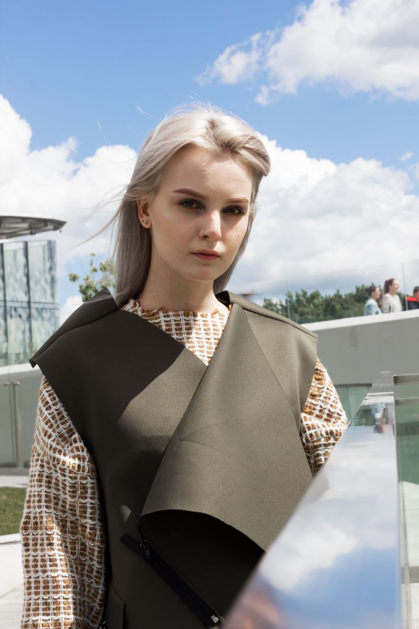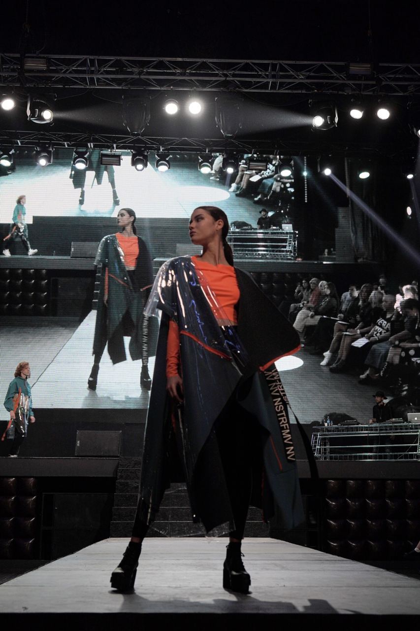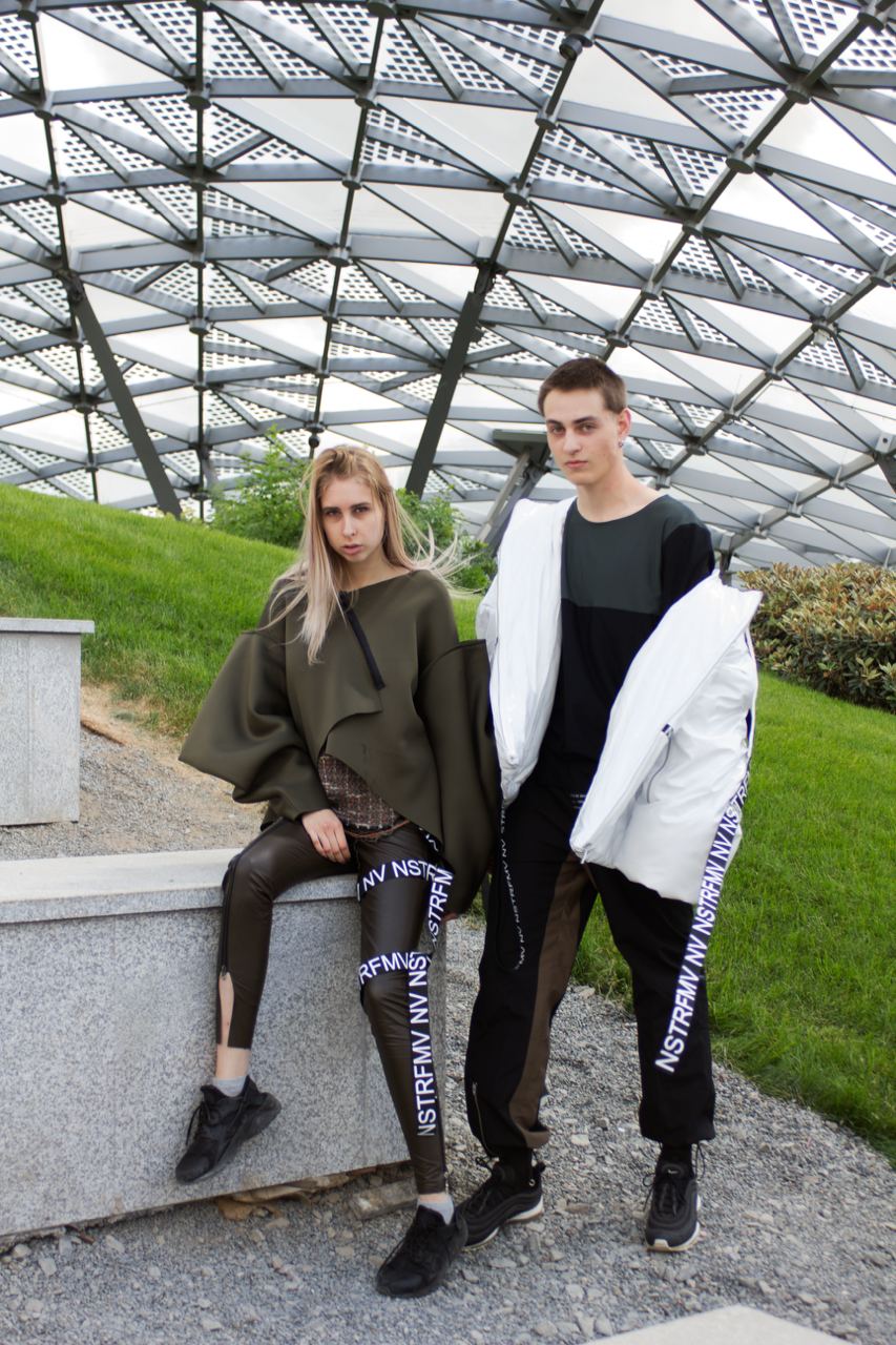 Трофимова Анастасия, основатель бренда NSTRFMV WEAR. На данный момент на счету бренда 6 подиумных коллекций, большое количество показов и съёмок, в том числе множество публикаций в зарубежных журналах. ДНК бренда включает в себя смешение разных стилей, таких как деконструктивизм, футуризм, avant-garde с элементами Street style. Асиметрия, трансформация, необычный крой, необработанные края, контраст фактур все это входит в концепцию бренда.