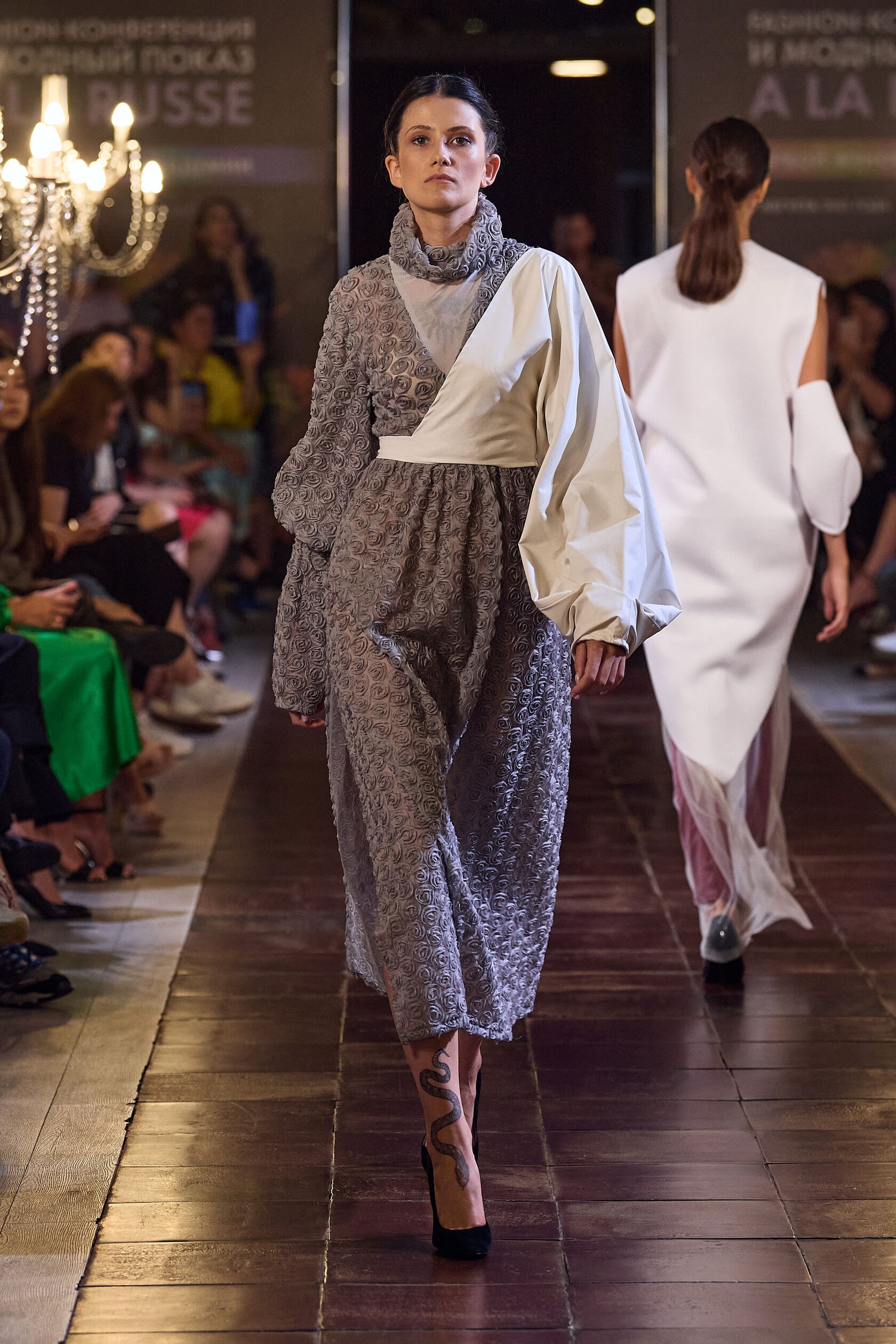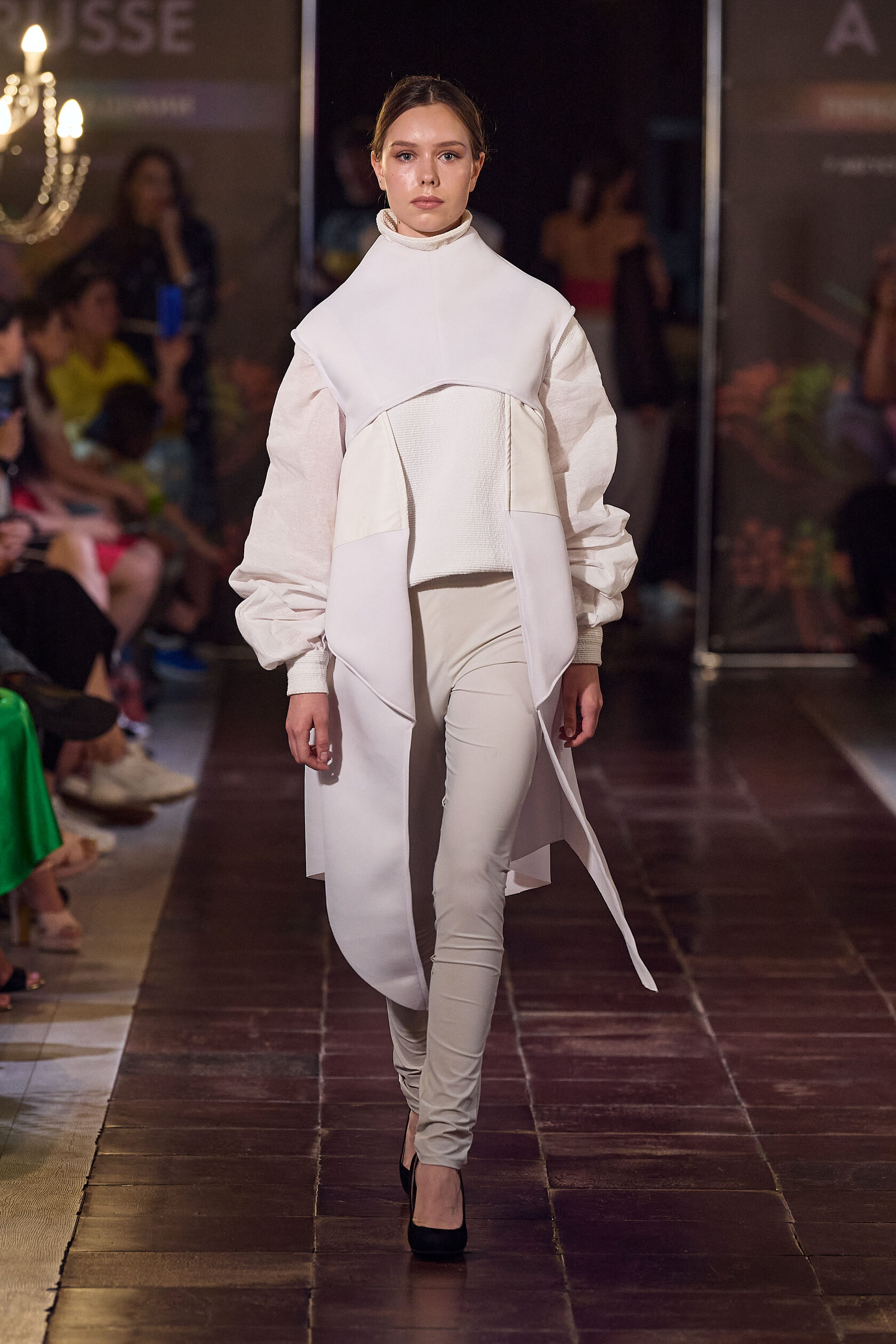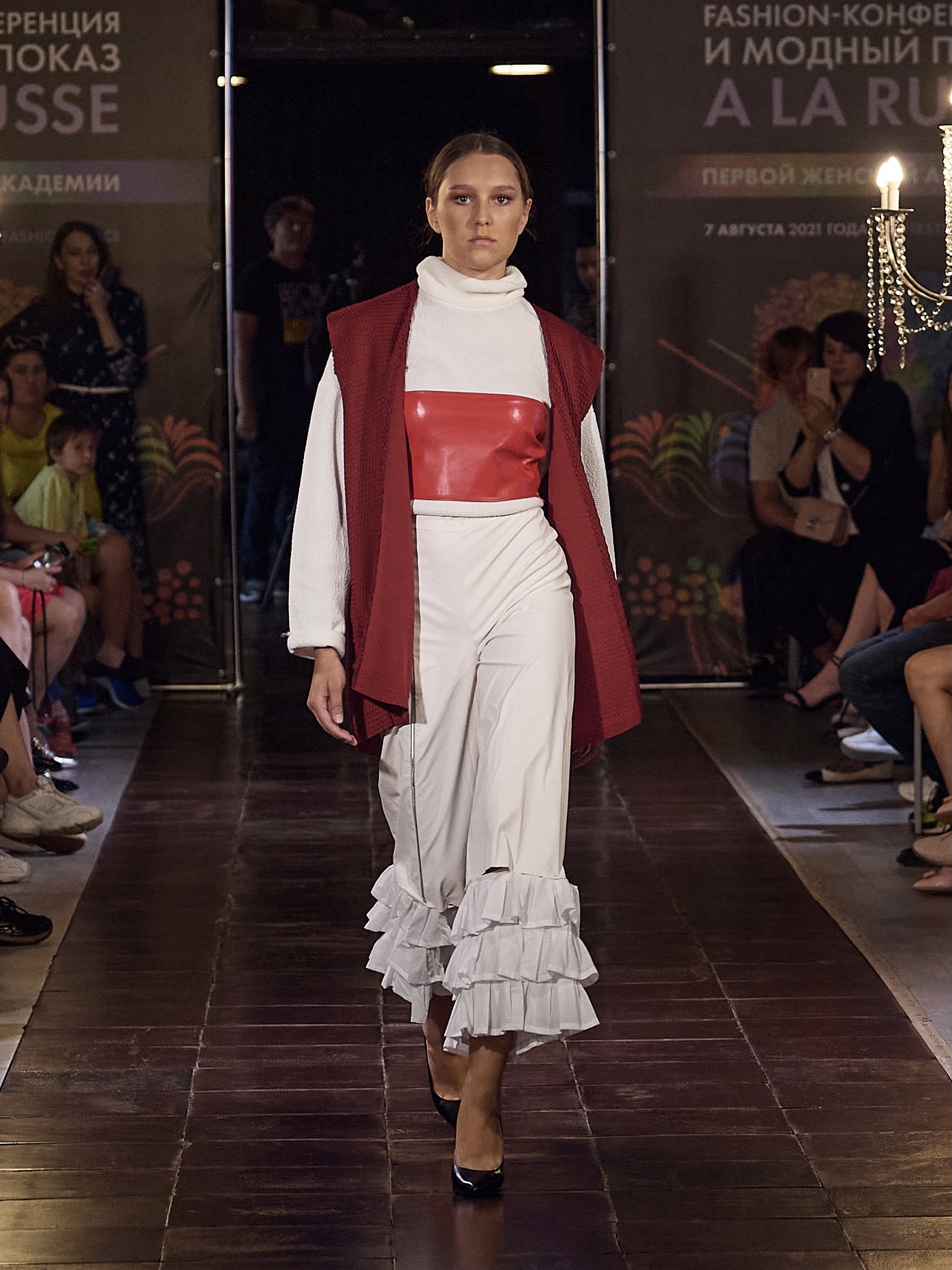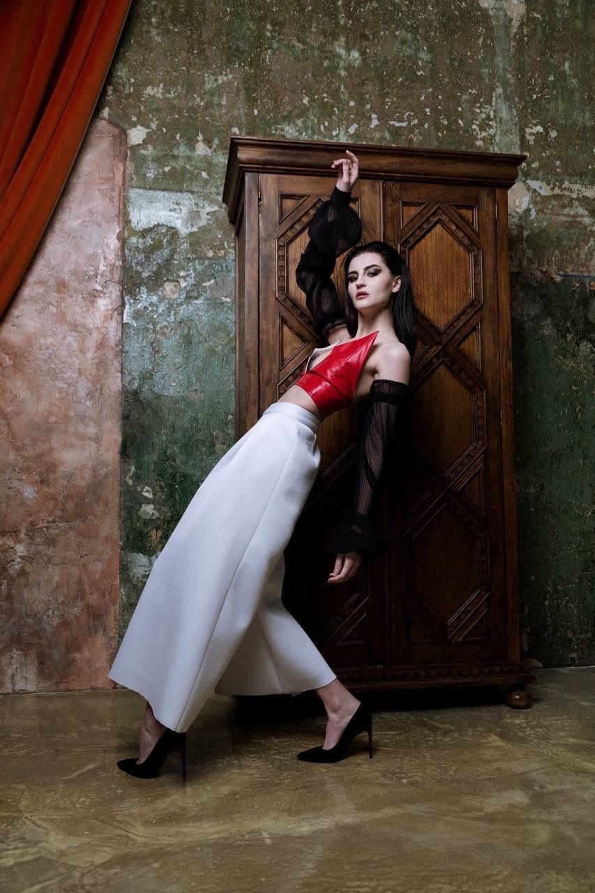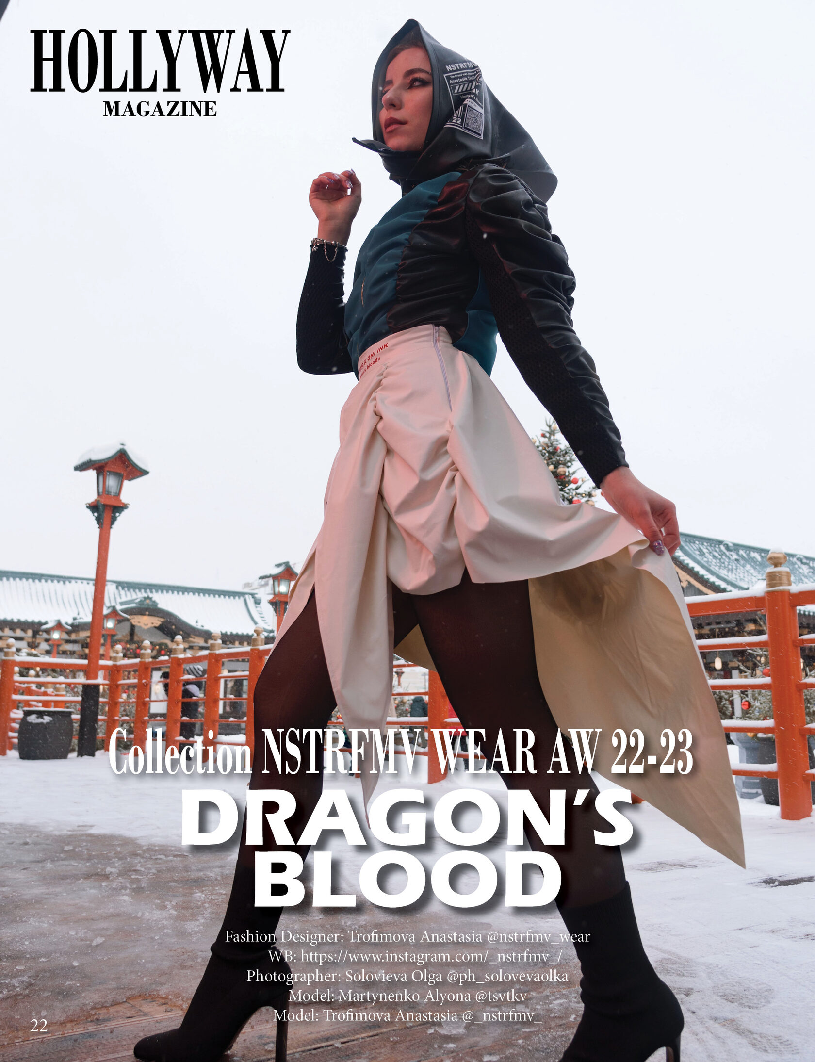 Трофимова Анастасия, основатель бренда NSTRFMV WEAR. На данный момент на счету бренда 6 подиумных коллекций, большое количество показов и съёмок, в том числе множество публикаций в зарубежных журналах. ДНК бренда включает в себя смешение разных стилей, таких как деконструктивизм, футуризм, avant-garde с элементами Street style. Асиметрия, трансформация, необычный крой, необработанные края, контраст фактур все это входит в концепцию бренда.