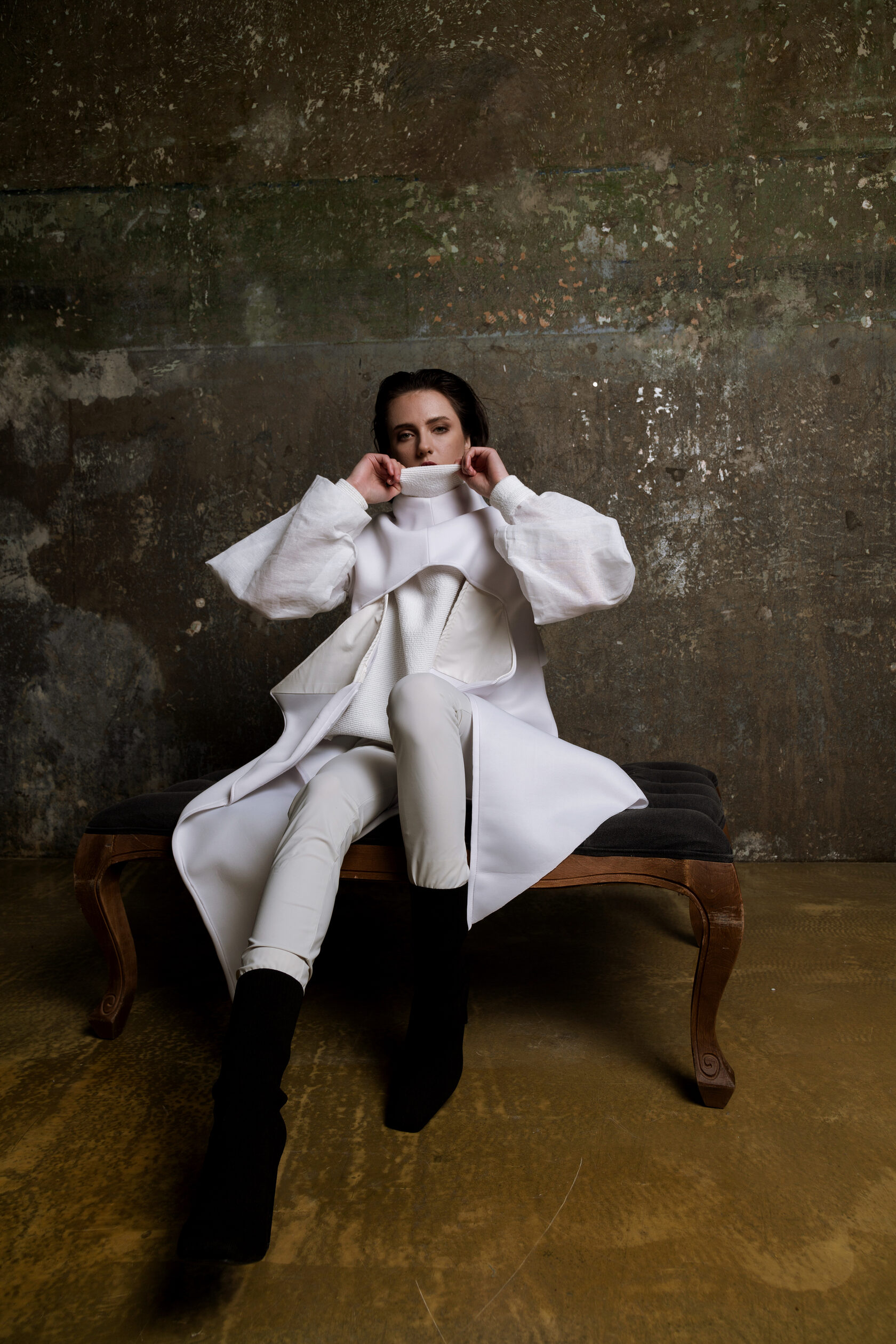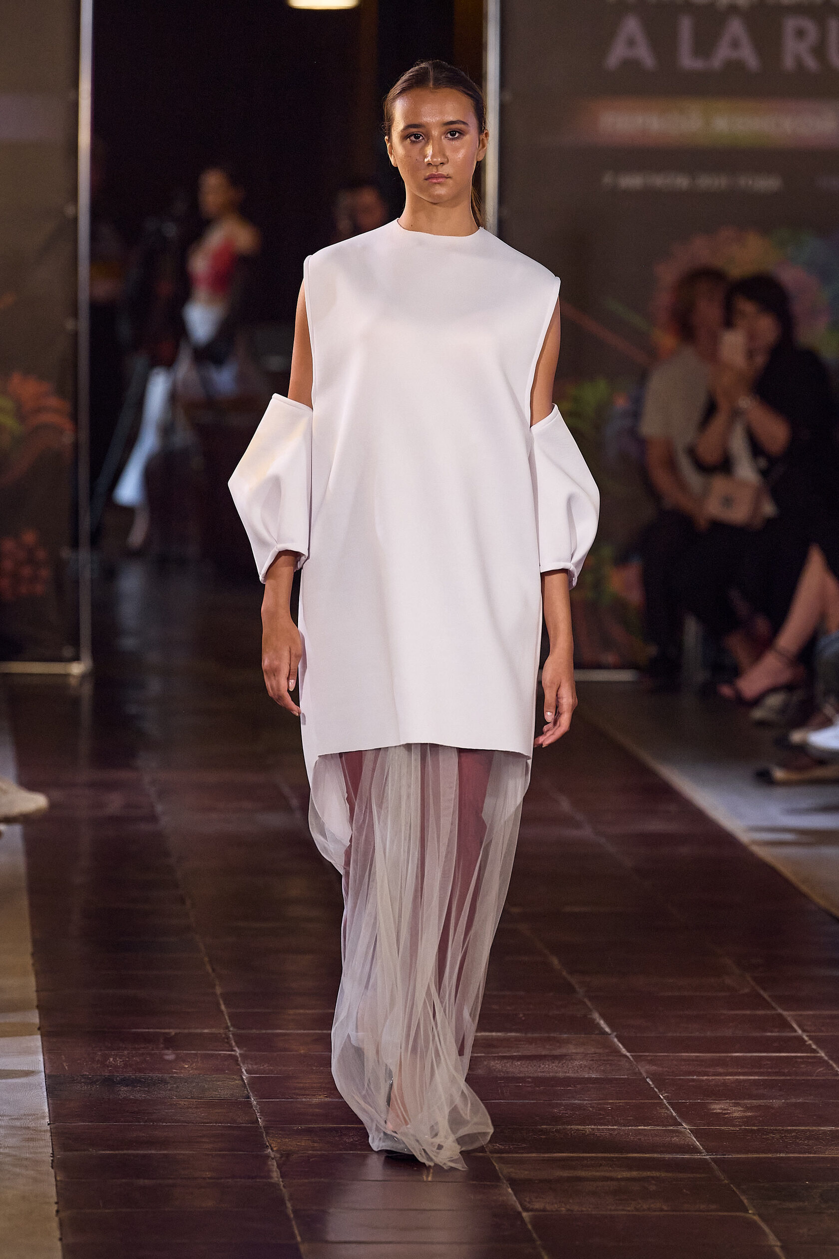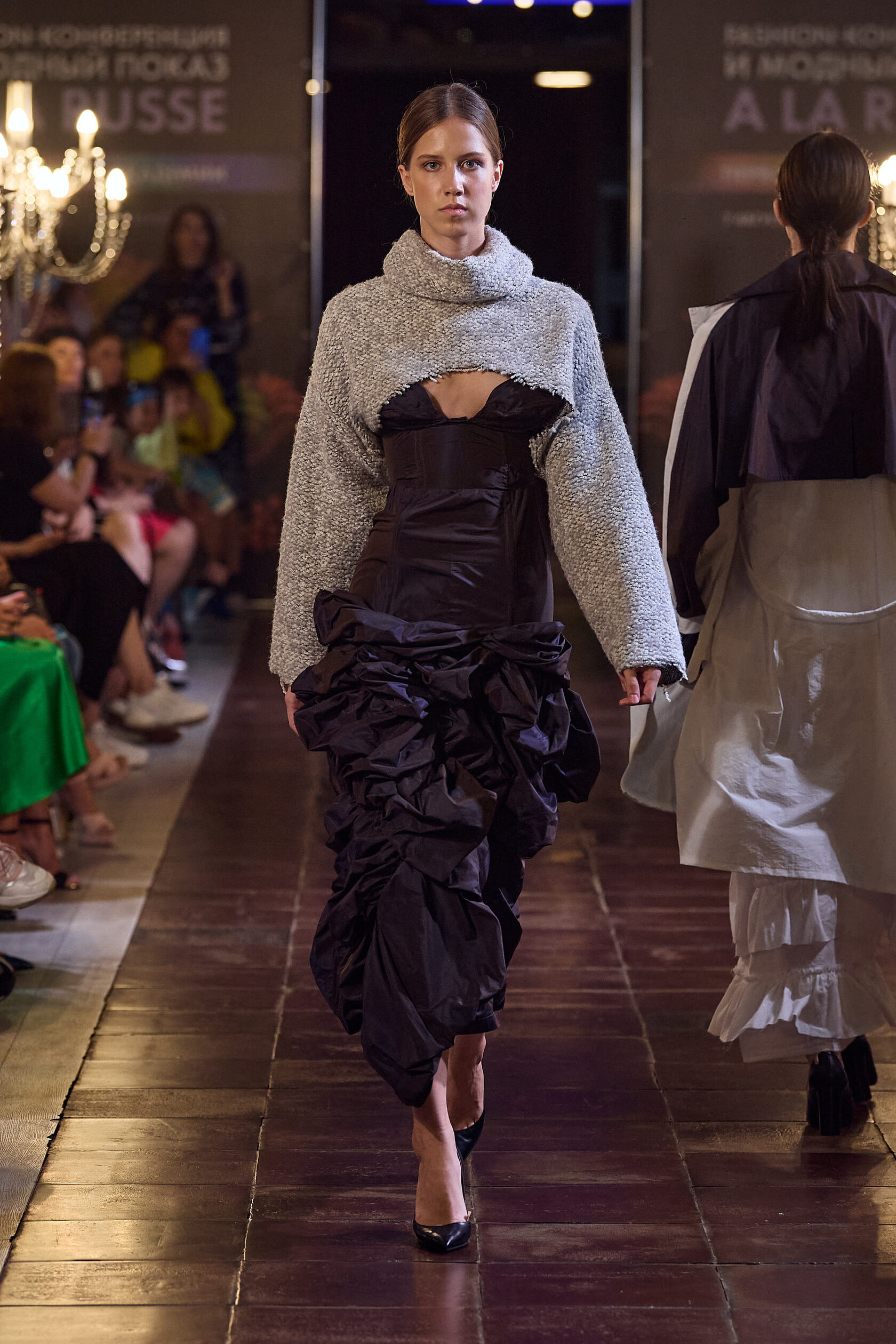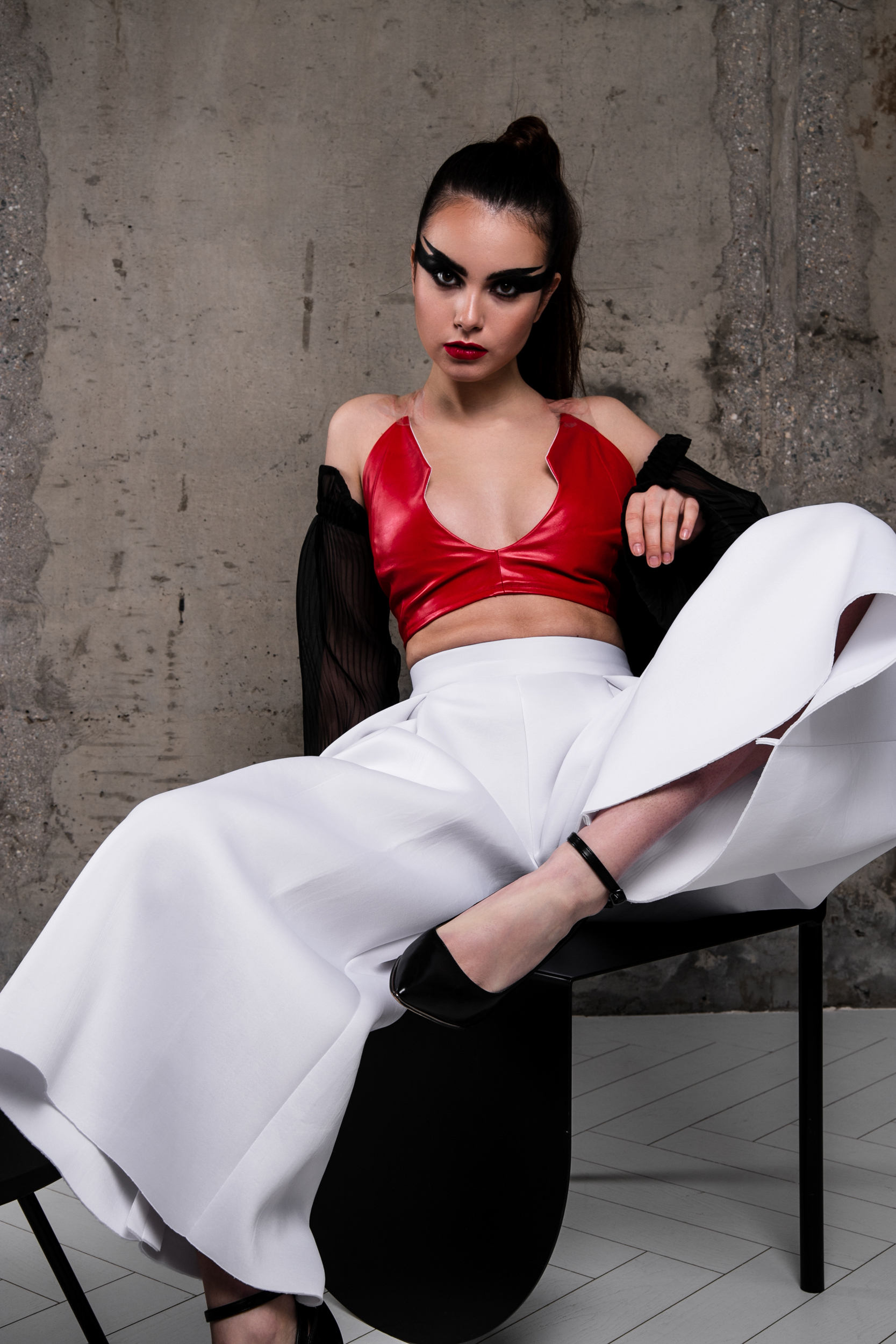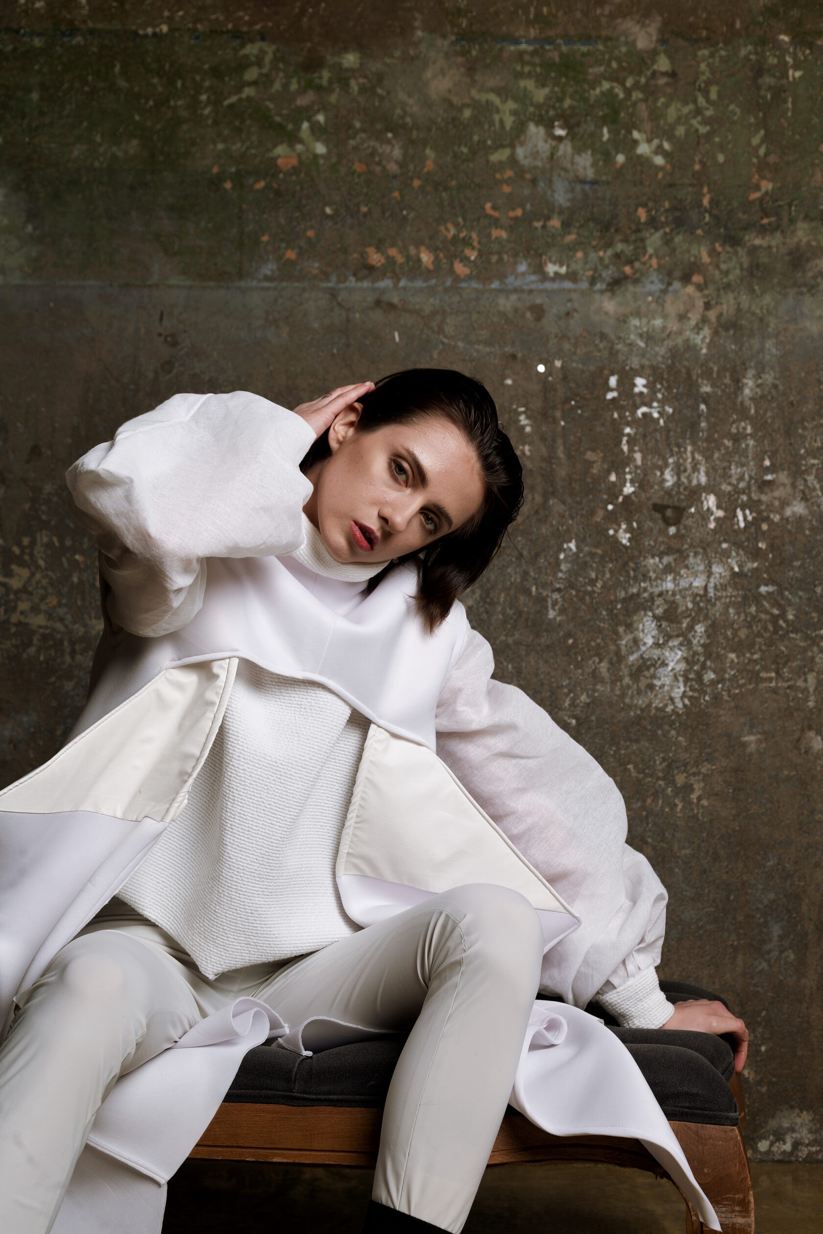 Трофимова Анастасия, основатель бренда NSTRFMV WEAR. На данный момент на счету бренда 6 подиумных коллекций, большое количество показов и съёмок, в том числе множество публикаций в зарубежных журналах. ДНК бренда включает в себя смешение разных стилей, таких как деконструктивизм, футуризм, avant-garde с элементами Street style. Асиметрия, трансформация, необычный крой, необработанные края, контраст фактур все это входит в концепцию бренда.