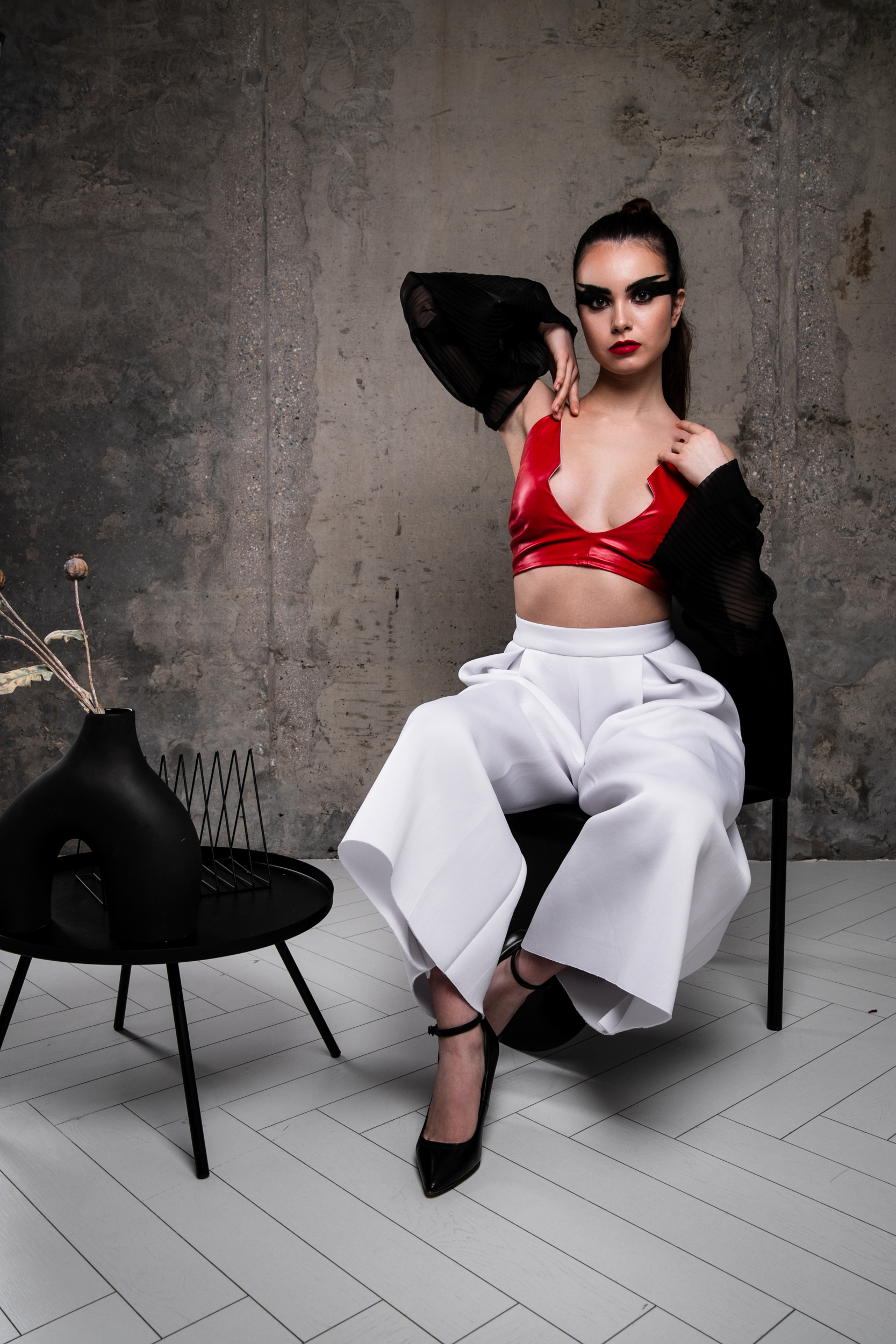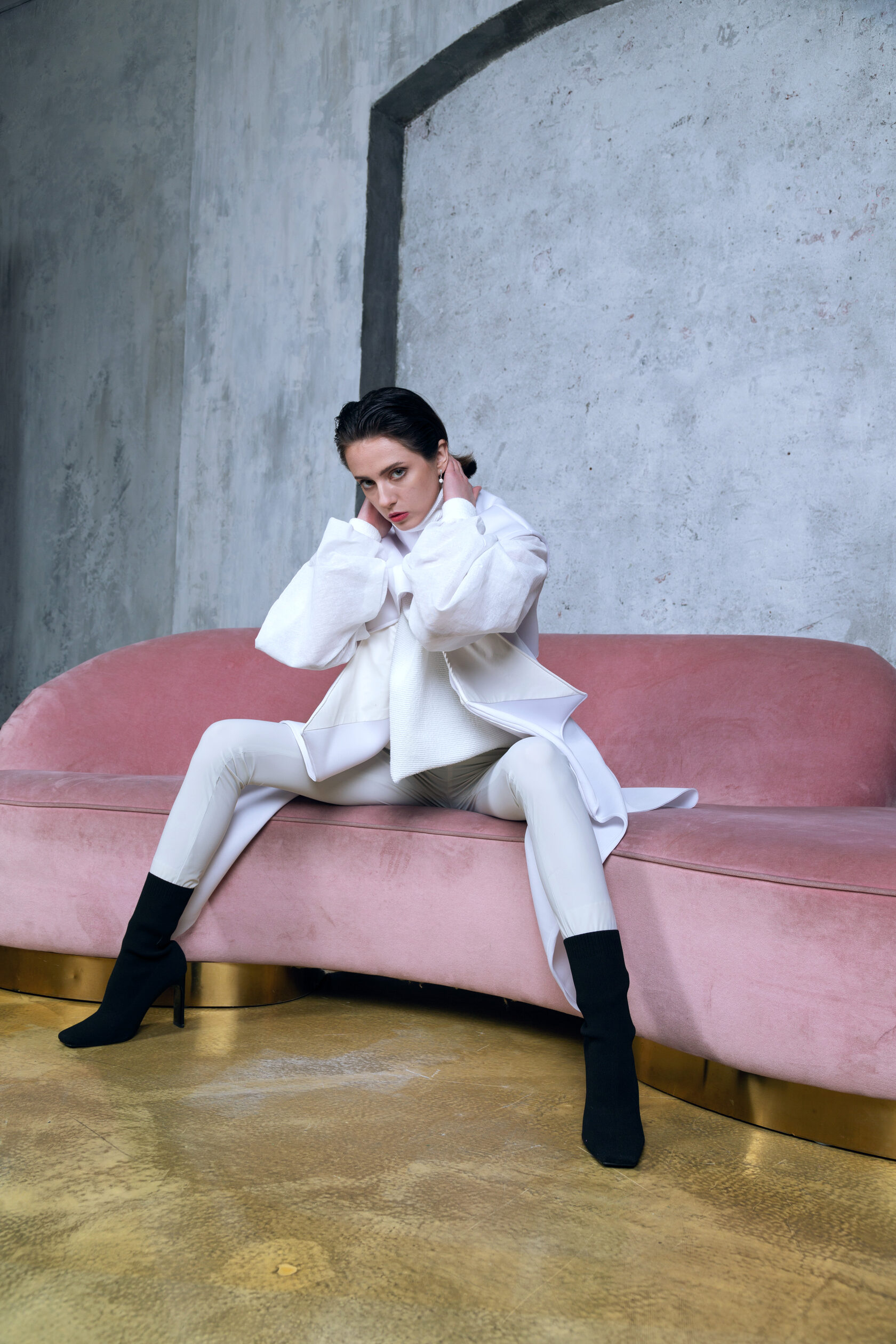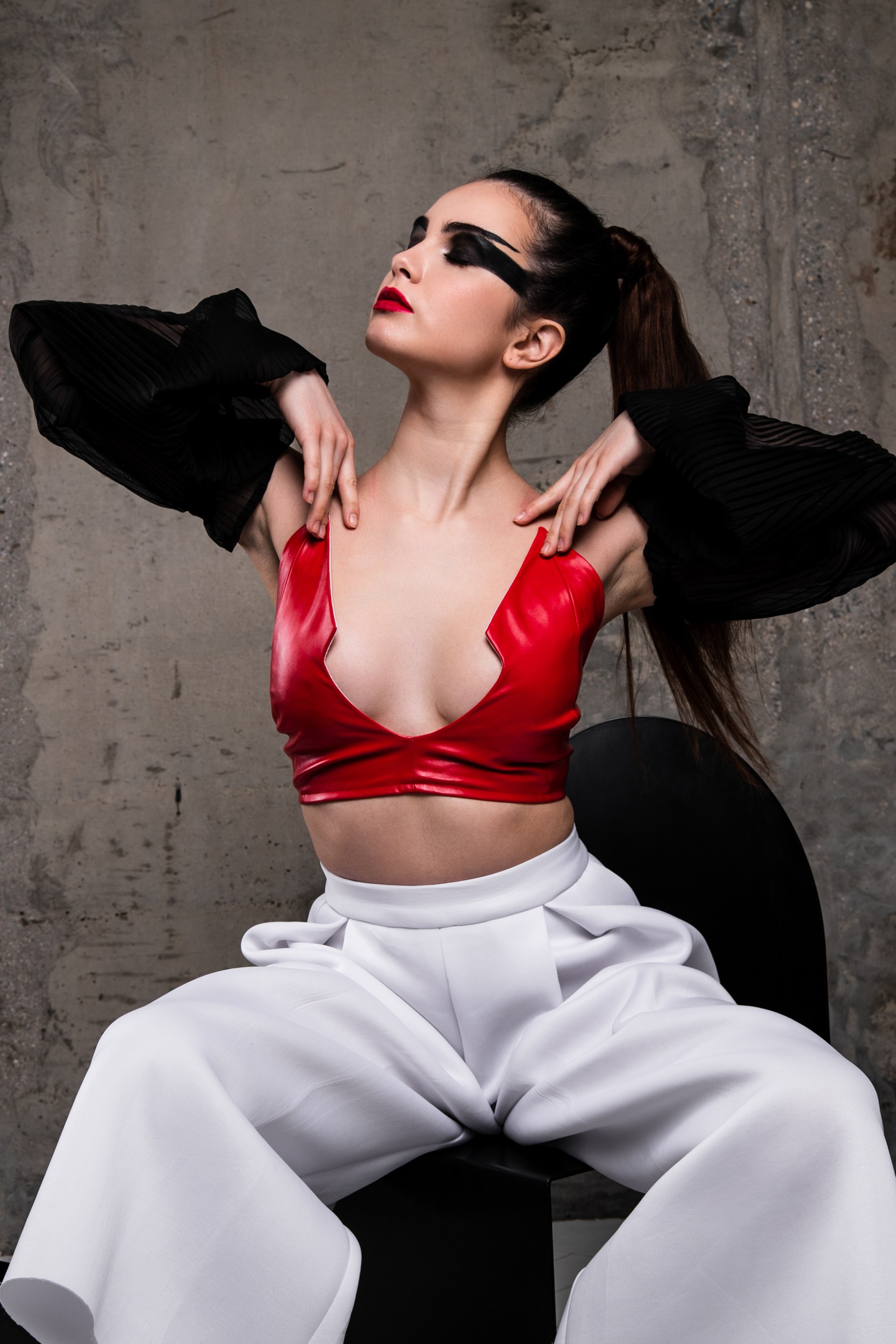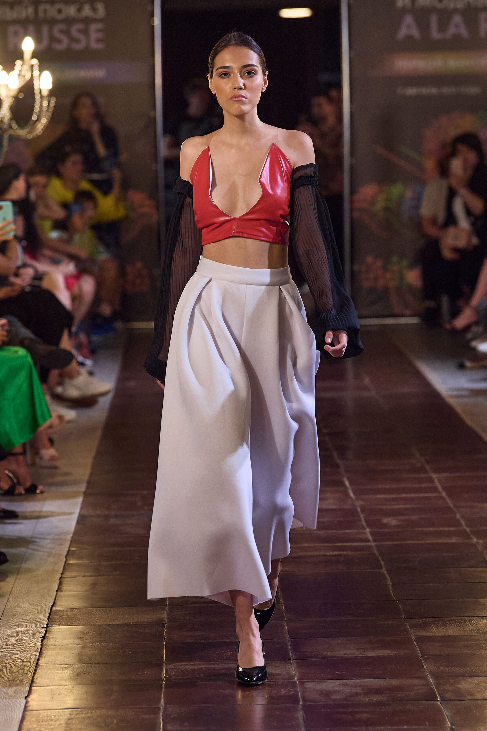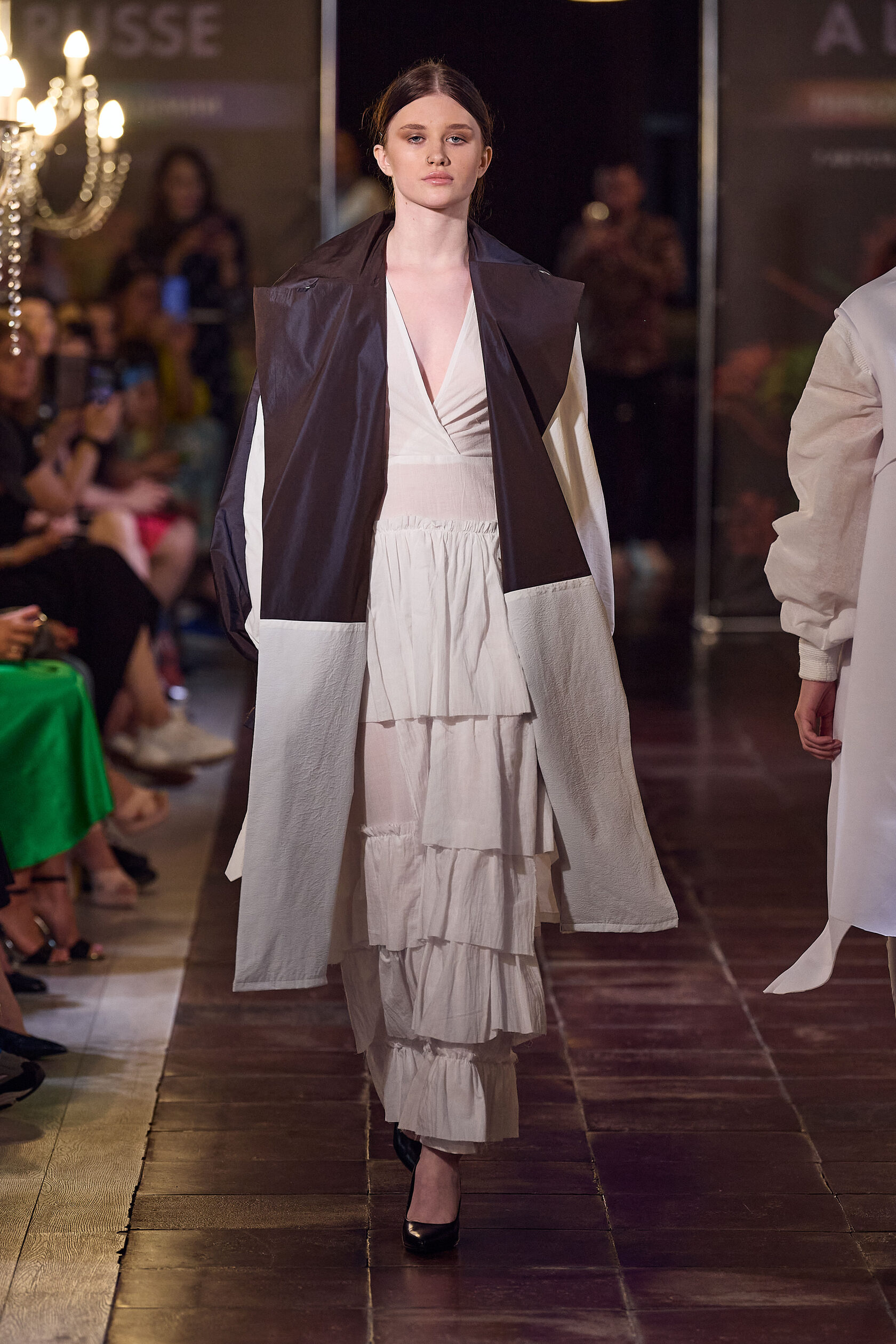 Трофимова Анастасия, основатель бренда NSTRFMV WEAR. На данный момент на счету бренда 6 подиумных коллекций, большое количество показов и съёмок, в том числе множество публикаций в зарубежных журналах. ДНК бренда включает в себя смешение разных стилей, таких как деконструктивизм, футуризм, avant-garde с элементами Street style. Асиметрия, трансформация, необычный крой, необработанные края, контраст фактур все это входит в концепцию бренда.